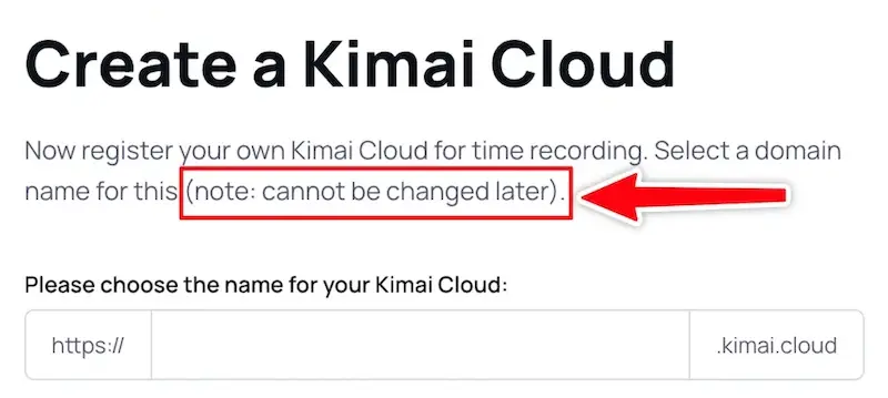 This subdomain is permanently bound to your Kimai instance and cannot be changed later.